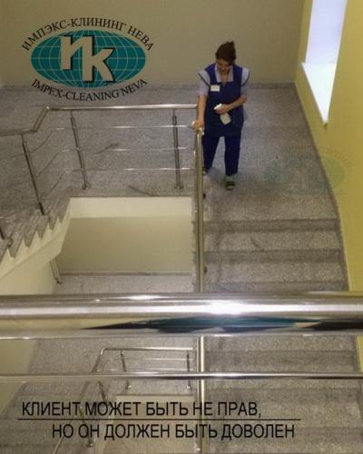 При уборке лестниц наш персонал ведет себя практически бесшумно: ведь за дверью любой квартиры может спать маленький ребенок или отдыхать взрослый после напряженного рабочего дня. Если убирается территория офиса - может проходить важное совещание, от которого зависит судьба крупного бизнеса. С жильцами домов и арендаторами бизнес-центров наши сотрудники безупречно приветливы и всегда опрятны. Уборка лестниц происходит незаметно, но оперативно, при этом отмываются даже самые застарелые пятна.