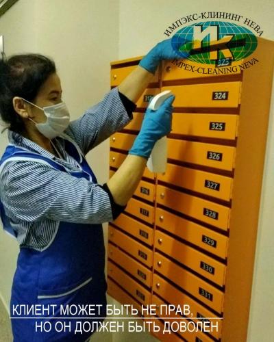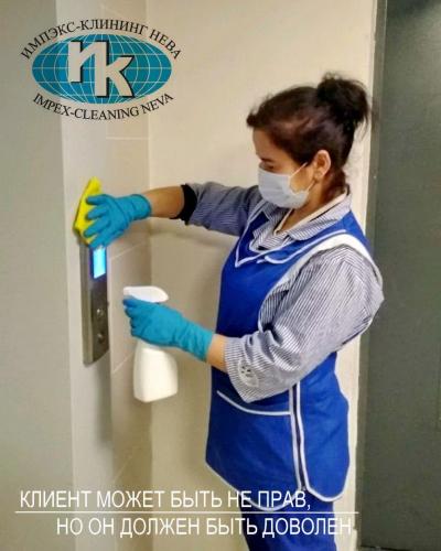 Уборке кабин лифтов уделяется особенное внимание - тщательно очищается не только пол, но и стены, рекламные стенды, зеркала (при их наличии). Убирается не только сама кабина, но и входная зона. Кнопка вызова дополнительно дезинфицируется.