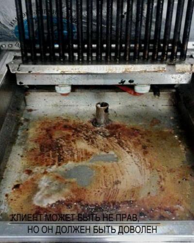 Приведение в порядок кухни в ресторане требует повышенного внимания - она сложнее всего. Именно на кухне во время постоянного приготовления блюд образуется практически несмываемый жировой налет на стенах, полу и даже потолке. Жир оседает на вентиляционных решетках, плинтусах и под мебелью.