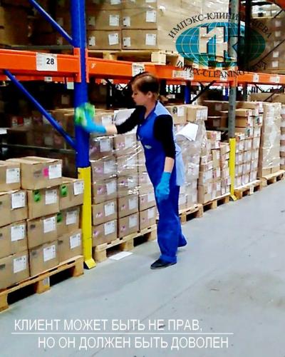 - Влажную уборку складского оборудования и мебели.