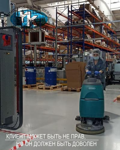 С момента начала пандемии соблюдаем все меры предосторожности при уборке складских и производственных помещений.