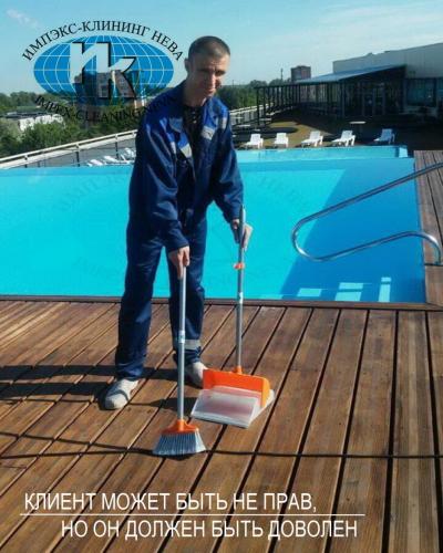 - очистка резиновых ковриков, лестниц, лежаков и шезлонгов, раздевалок, мытье полов, потолков, стен, мойка окон и всех стеклянных поверхностей,