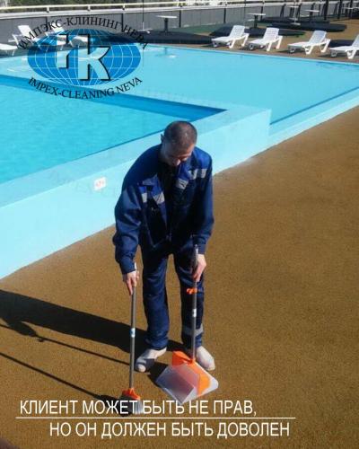 - тщательная уборка поверхностей около бассейна, включая глубокую очистку напольных покрытий при необходимости,