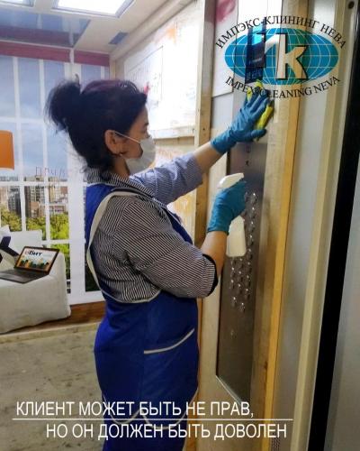 Уборке кабин лифтов уделяется особенное внимание. Тщательно очищаются пол, стены, рекламные стенды, зеркала. Кнопки дополнительно дезинфицируются.
