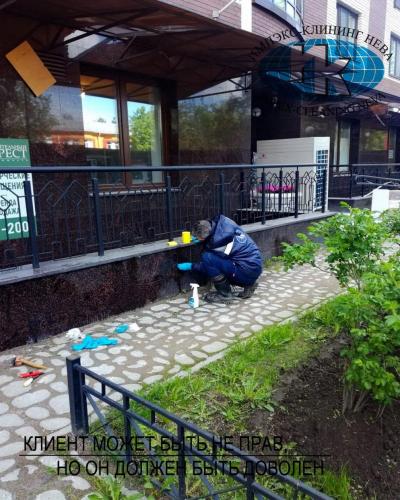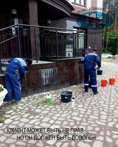 Чистка гранитного покрытия на территории кафе в центре СПб: