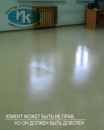 Во многих помещениях, предназначенных для посещения большим количеством людей, исторически и традиционно кладется на пол линолеум. Это мягкое покрытие, как никакое другое, нуждается в регулярном профессиональном уходе и защите. Периодическая чистка (машинная мойка пола) и полимеризация линолеума позволит всем помещениям выглядеть без преувеличения блестяще.