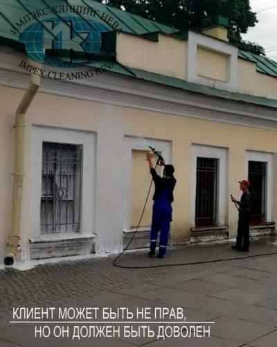 - очистка самого фасада, остекления, отливов, водосточных труб, вывесок;