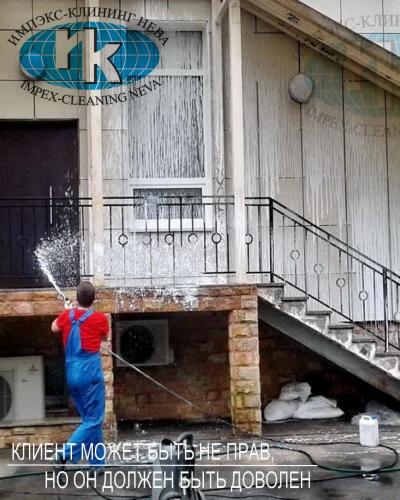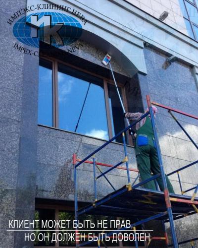 Клининговая компания Импэкс-клининг НЕВА проводит мойку фасадов как вручную, так и с применением техники промышленного альпинизма. Промальп позволяет наиболее эффективно мыть стены на любой высоте и работать на поверхностях любой сложности.