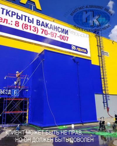 Моем окна, витрины, входные группы, одновременно моем фасад: