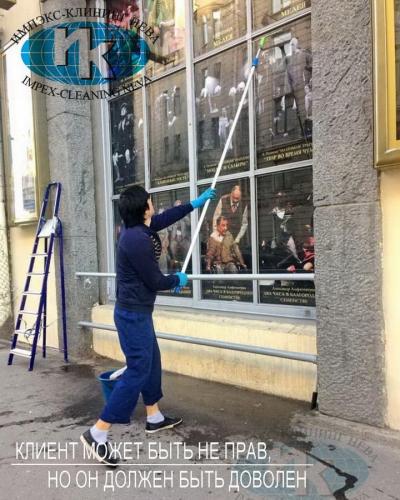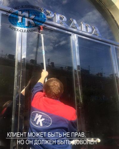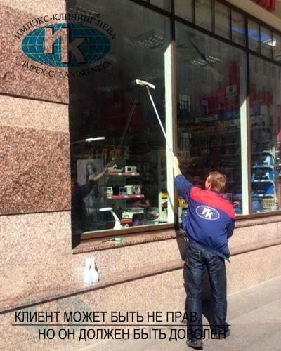 - мытье витрин любого размера, в том числе мытье витрин более 5 м высотой,
