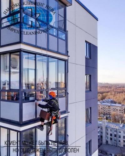 В целях безопасности в многоэтажных зданиях и на крышах зданий мытье остекления снаружи (промышленная мойка стекол и мытье фасадов альпинистами) должна производиться только профессионалами, умеющими не только работать на высоте, но и качественно мыть остекление.