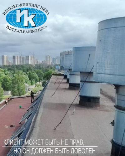 В рамках выполнения комплекса работ по уборке производственных зданий, цехов и складов, возможно выполнение мойки и чистки кровельного покрытия, включающих в себя также бережную мойку остекления с выходом на кровлю. Работы на крышах и кровлях проводятся специалистами высотниками, имеющими большой опыт альпинистских работ и действующие допуски для выполнения работ подобного типа. Все сотрудники отдельно проходят обучение по работе с современными моющими средствами и химическими препаратами, что гарантирует их эффективную работу в отношении чистки поверхностей, расположенных в труднодоступных местах.
