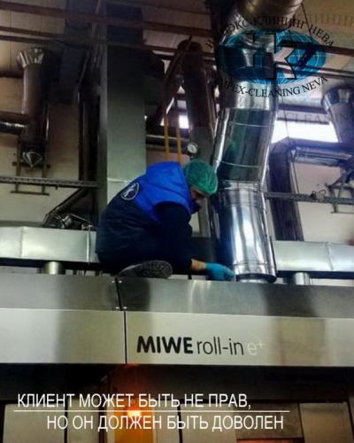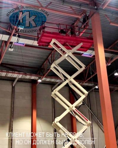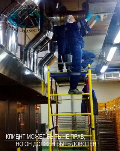Чистка потолочных конструкций и других элементов на пищевом производстве: