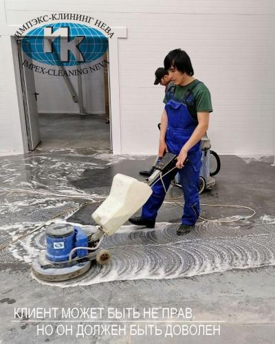 Чистке напольного покрытия при уборке на производстве уделяется особенное внимание. Для полного и глубокого удаления любых типов загрязнений используются мощные роторные машины.